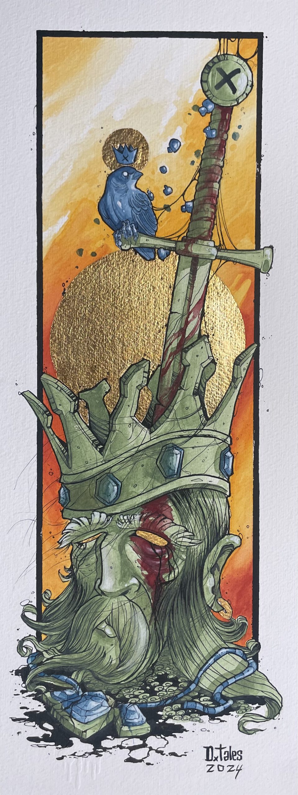 Schmincke watercolor, Dr. Ph Martin’s Black Star matte black ink on 300lb Fabriano paper.
